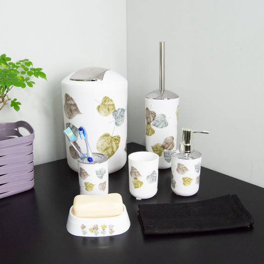 Juego De Accesorios Para Baño Beige Con Plata 7 Piezas