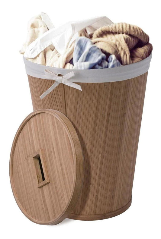 Cesto Canasto De Bambú Con Tapa E Interior De Tela, Ropa