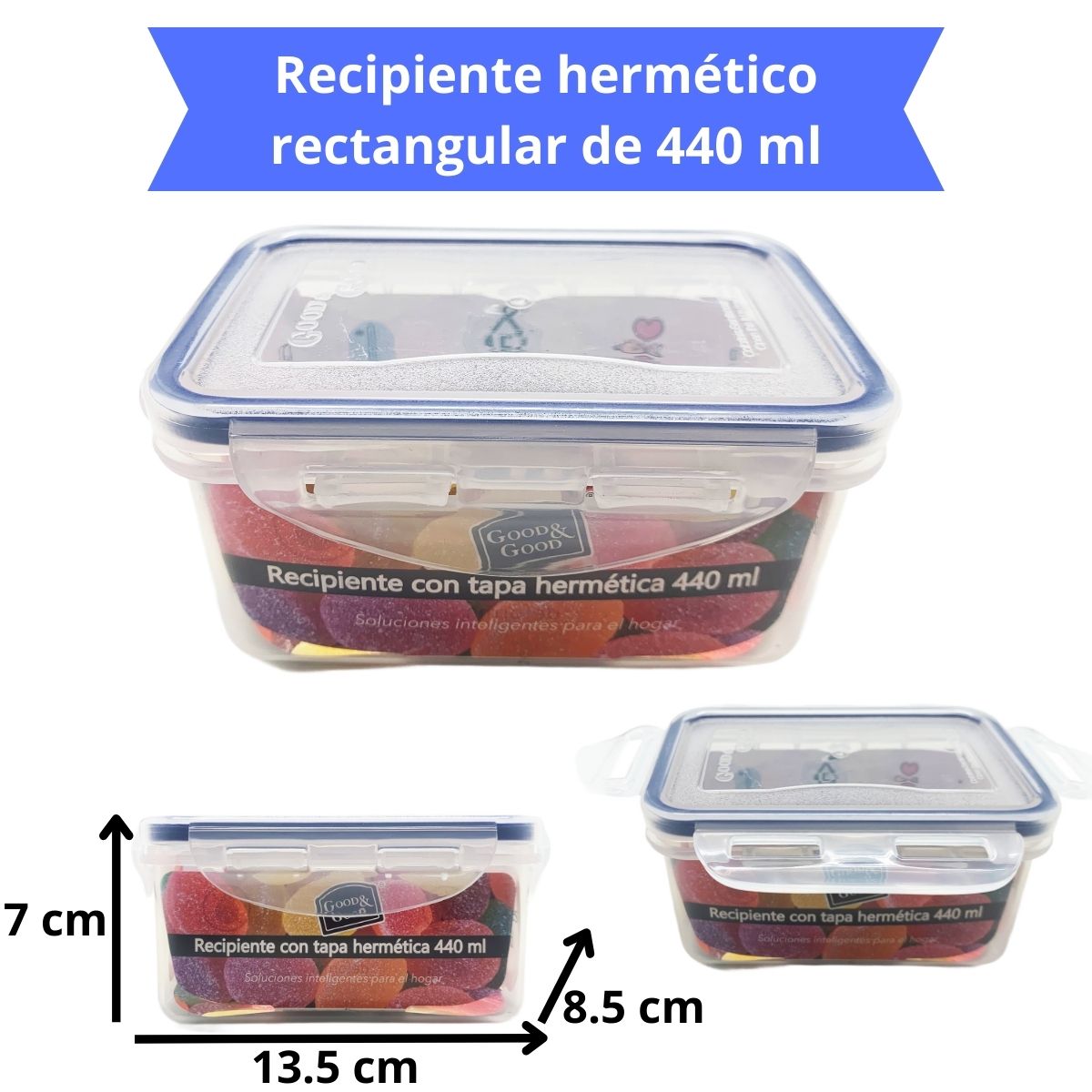 Recipiente con tapa hermética 440 ml: Ideal para almacenar golosinas como gominolas o jaleas, manteniéndolas frescas y listas para disfrutar.