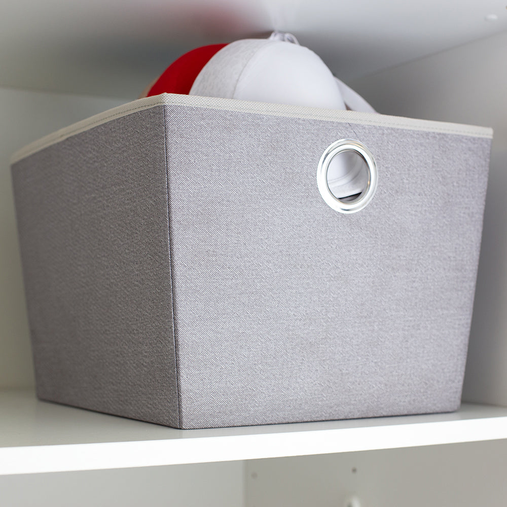 Canasta grande de yute con asas de ojal color gris
