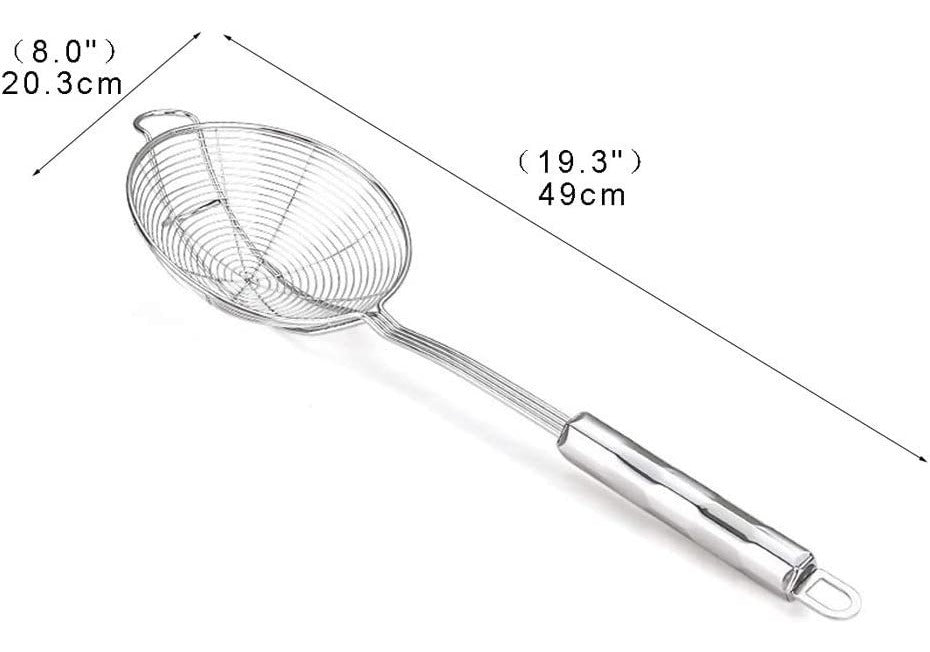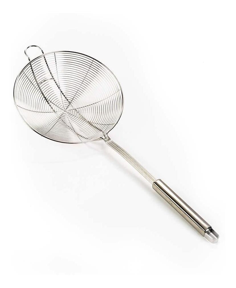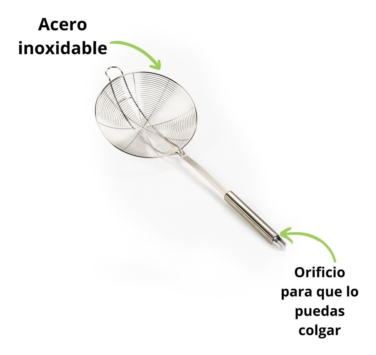 Colador de cocina elaborado de acero inoxidable. Su diámetro mide 20 cm. Su mando es de acero inoxidable para sujetarlo de manera fime y tiene un orificio para que lo puedas colgar. Es un utensilio que no puede faltar en tu cocina.