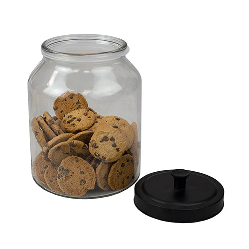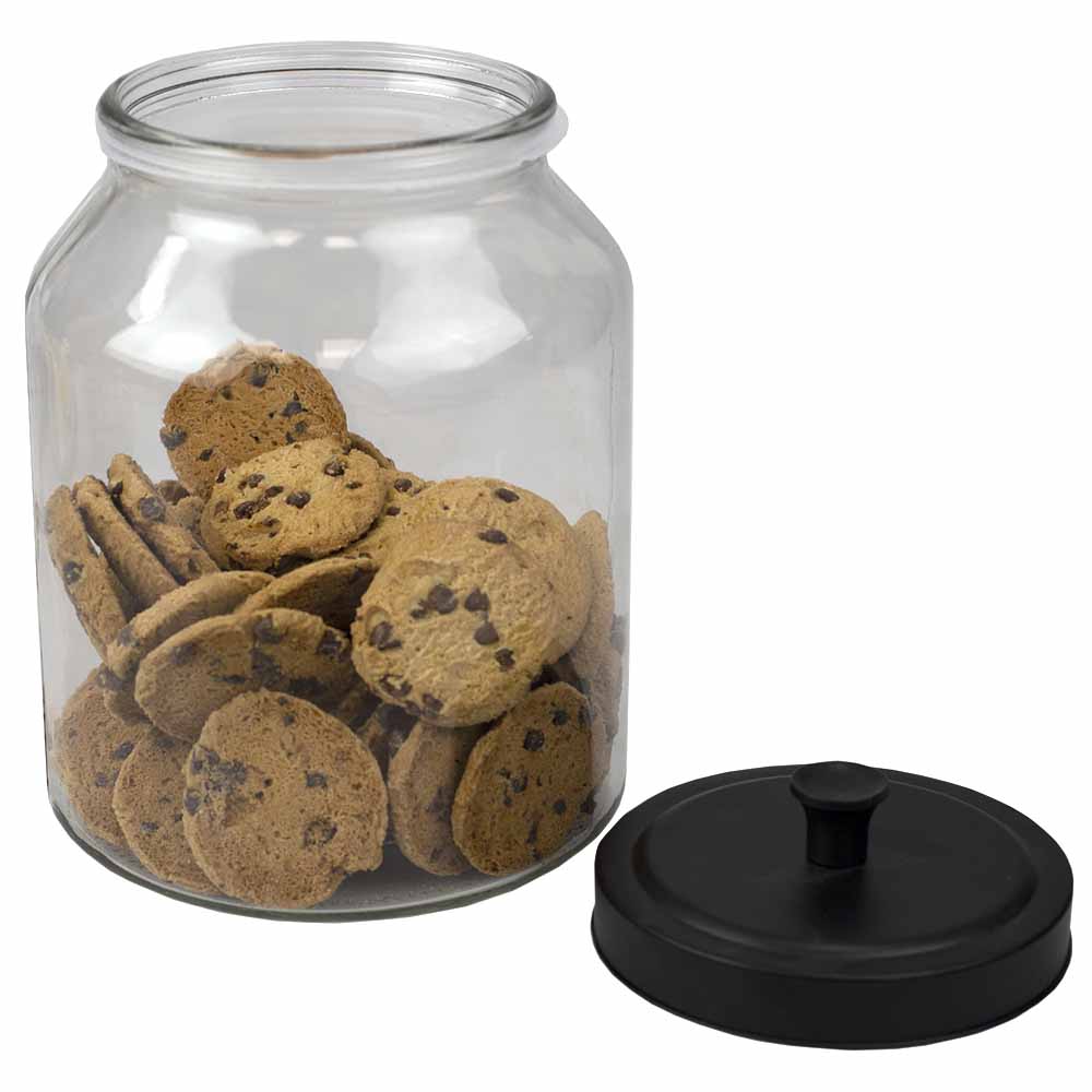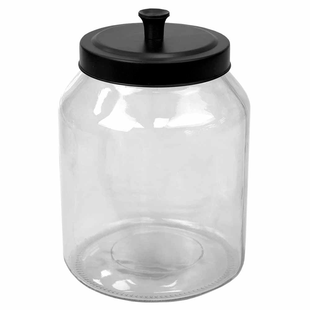 Dulcero de vidrio. Hecho de vidrio resistente con paredes gruesas para evitar golpes accidentales. El frasco está cubierto con tapas de color negro mate y perillas de fácil agarre para levantarlo fácilmente. Perfecto para almacenar condimentos para bebidas, productos horneados, suministros de oficina y utensilios de cocina. El vidrio transparente le permite ver lo que hay dentro sin tener que quitar la tapa. La boca ancha hace que sea fácil sacar el contenido y limpiar el interior. Capacidad 3L