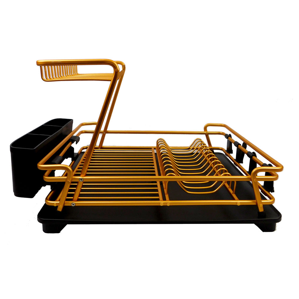 Escurridor con triple porta utensilios y charola escurridora, ideal para que tu vajilla, utensilios y cubiertos se sequen a la perfección, diseño elegante, material resistente.