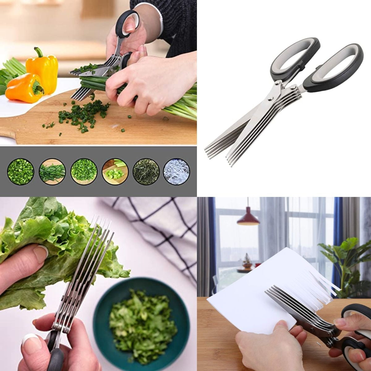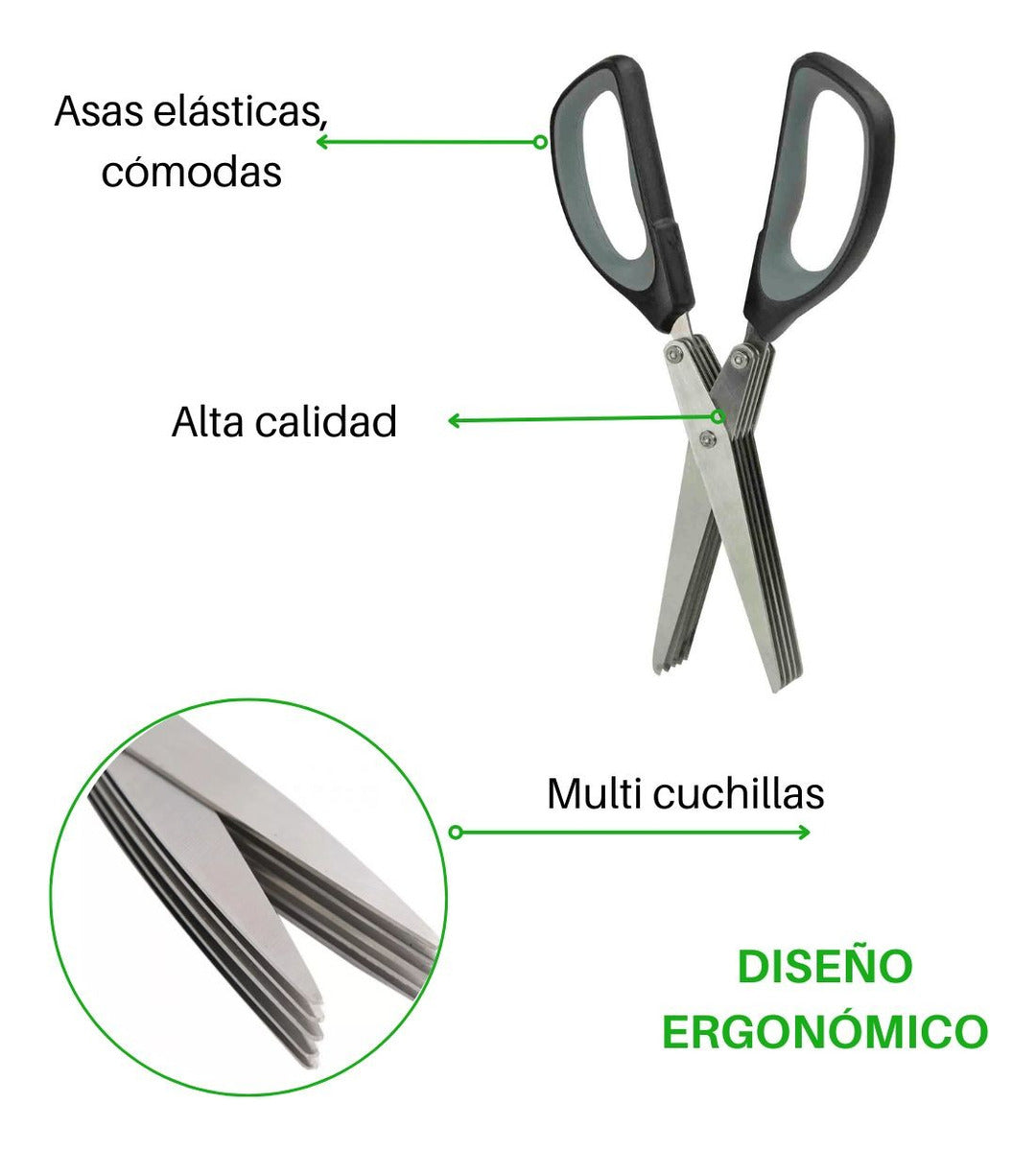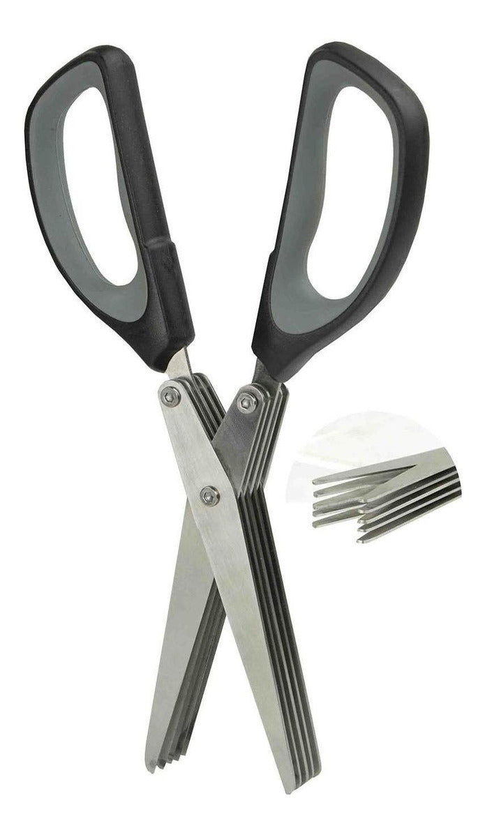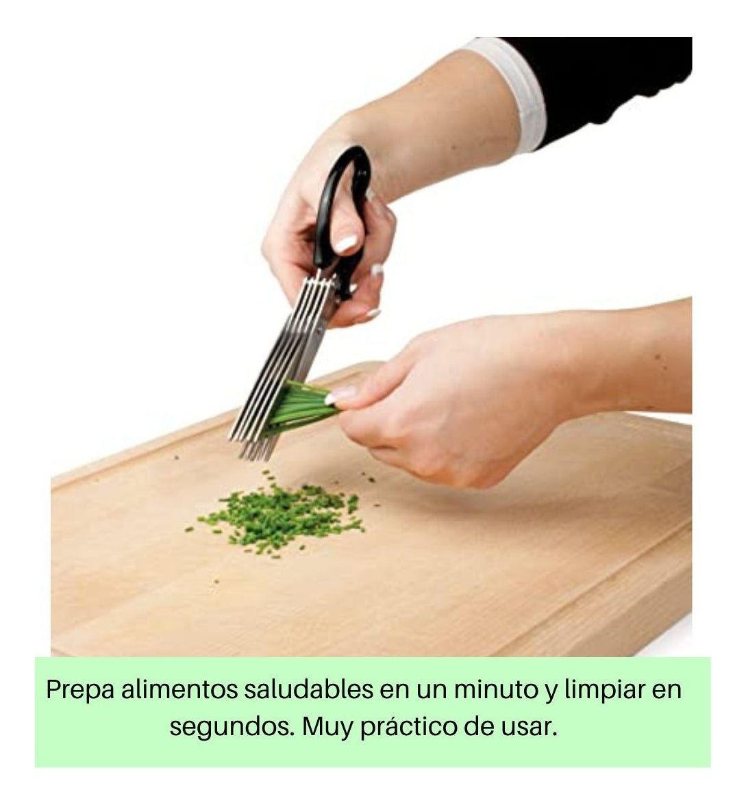 TIJERAS DE ACERO INOXIDABLE MULTI CUCHILAS PARA HIERBASTijeras cortadoras de hierbas son 5 pares de cuchillas que funcionan al mismo tiempo, cortan desde el perejil, cilantro y mucho más. Es el complemento ideal para tu cocina y facilitar el corte de hierbas. Hecho de acero inoxidable para mayor durabilidad. Asas ergonómicas adoptan un diseño ergonómico curvado en forma, que es adecuado para la forma natural del cuerpo humano, para darte un agarre más cómodo, reduciendo la fatiga causada por el uso de tijeras.Color: PlateadoMaterial: Acero inoxidableMedidas: Largo 28 cm/ Alto 1.5 cm/ Ancho 7 cm