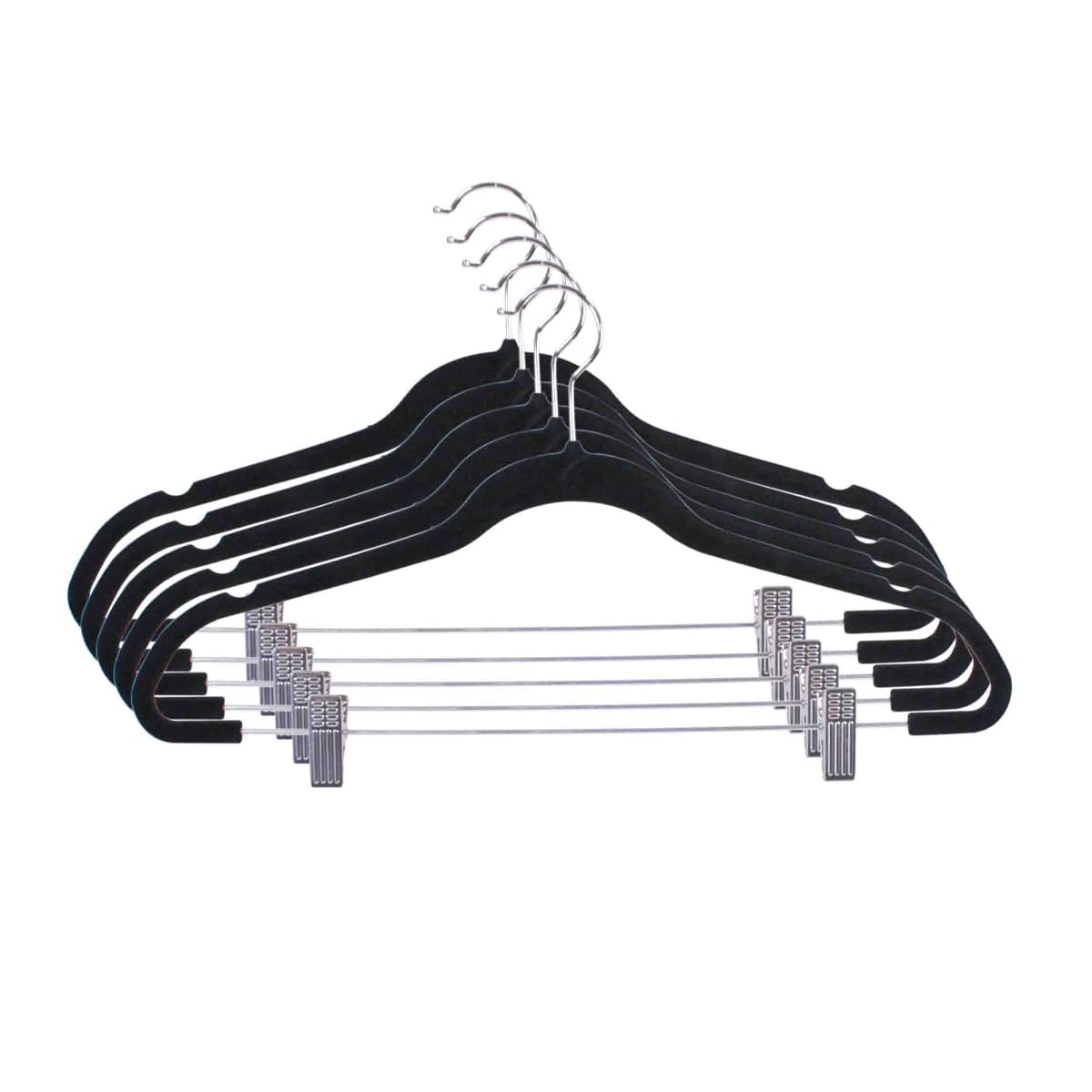 Home Basics FH01454 - Percha de Ropa de Terciopelo con Clips, Color Negro (5 Unidades)