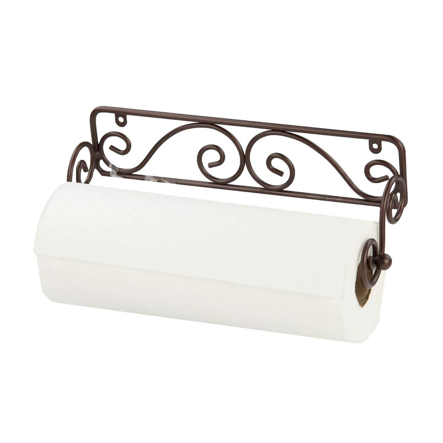 Si la afinidad por las cosas más finas de la vida es más su estilo, entonces este elegante toallero de papel de acero montado en la pared podrÃa ser su pareja. Los intrincados rollos recubiertos de bronce acunan con gracia un solo rollo de toallas de papel, mientras que el mecanismo montado en la pared maximiza el espacio de su mostrador. Disfrute del lujo y muestre su lado sofisticado con esta pieza clásica. Hecho de acero resistente, recubierto de bronce con detalles de desplazamiento ornamentados.