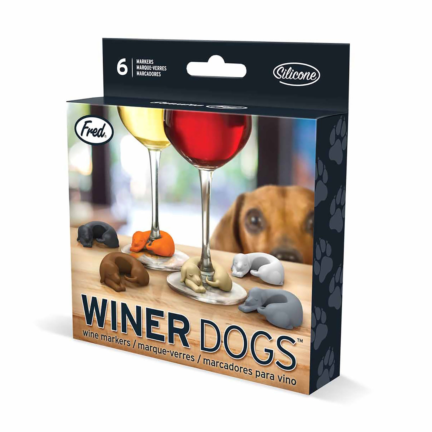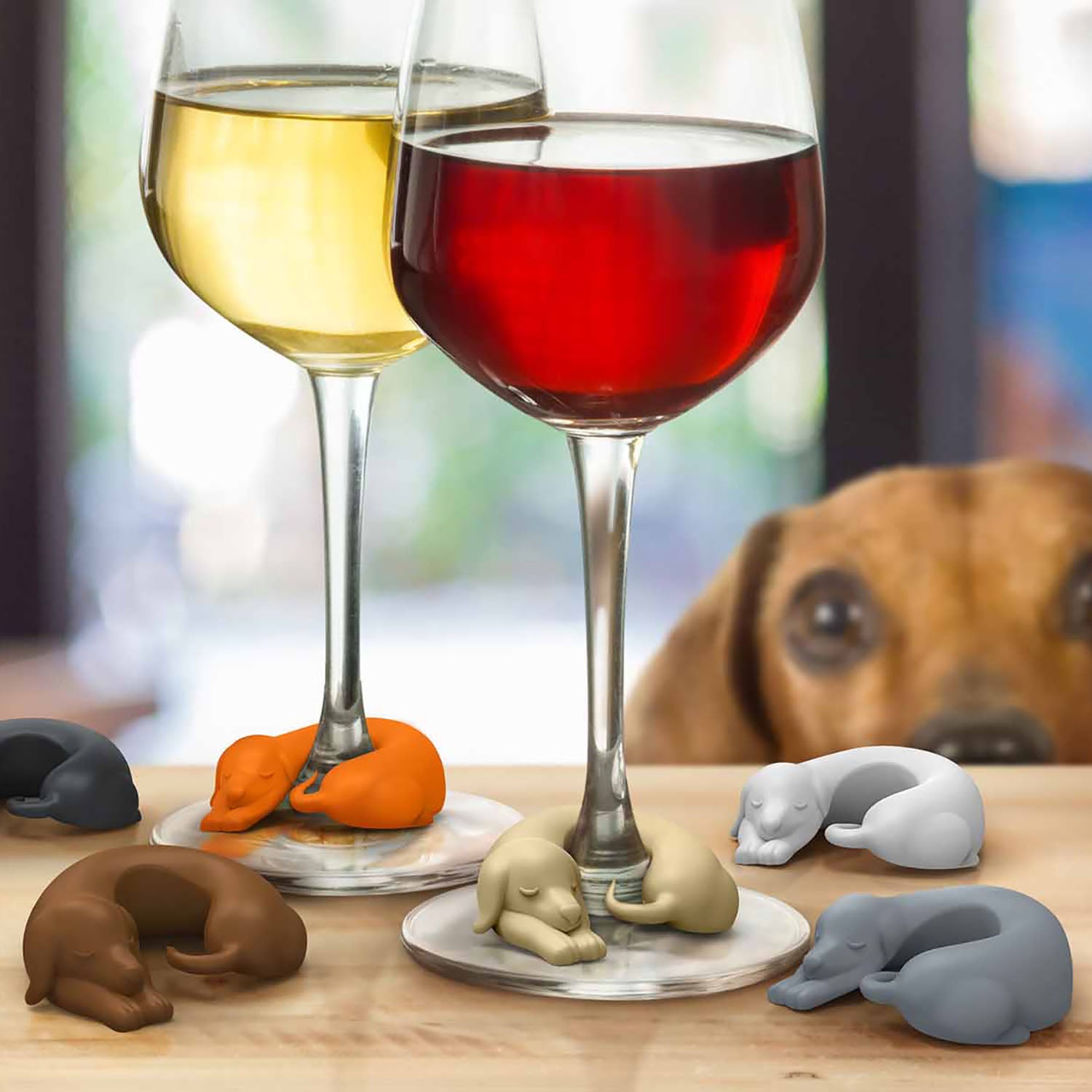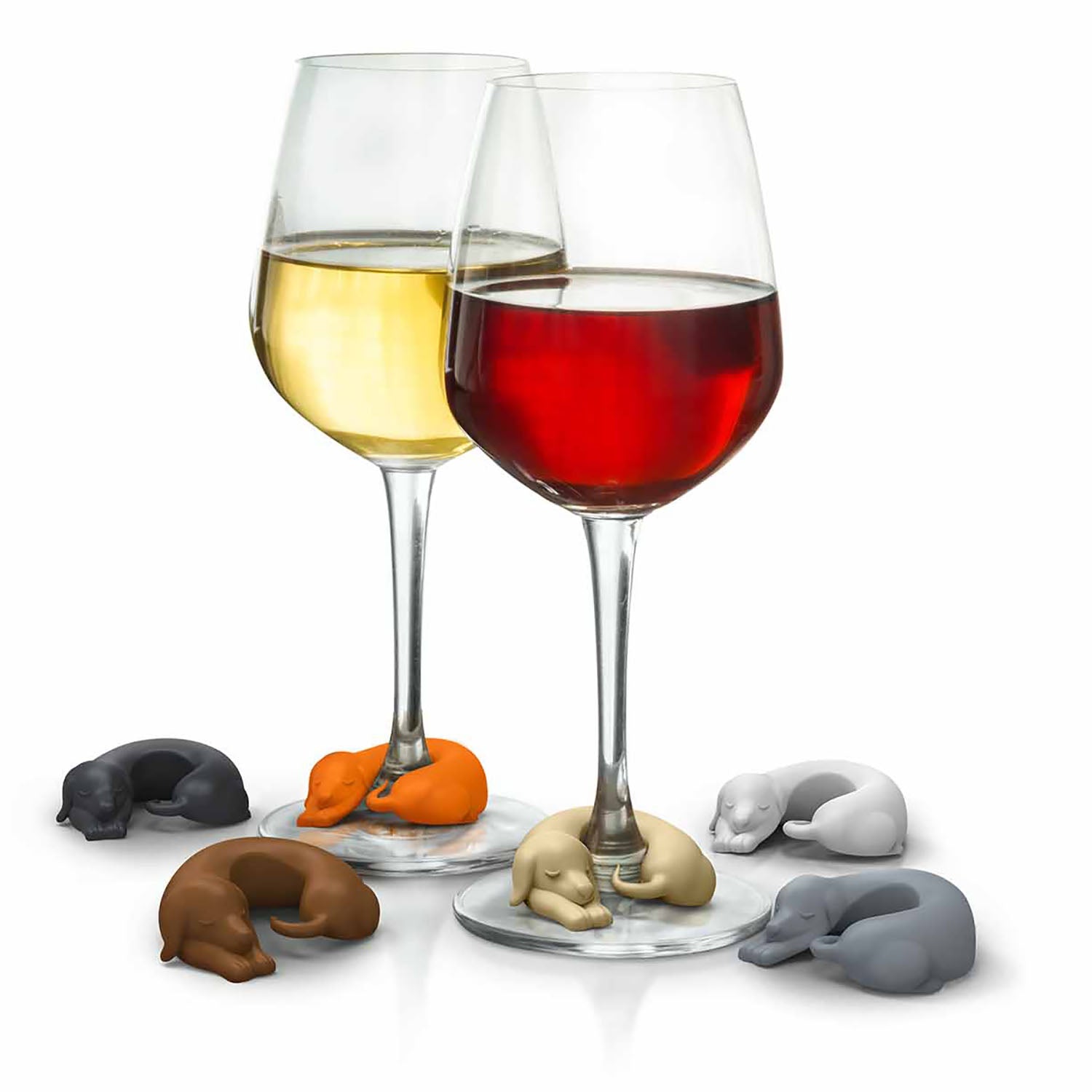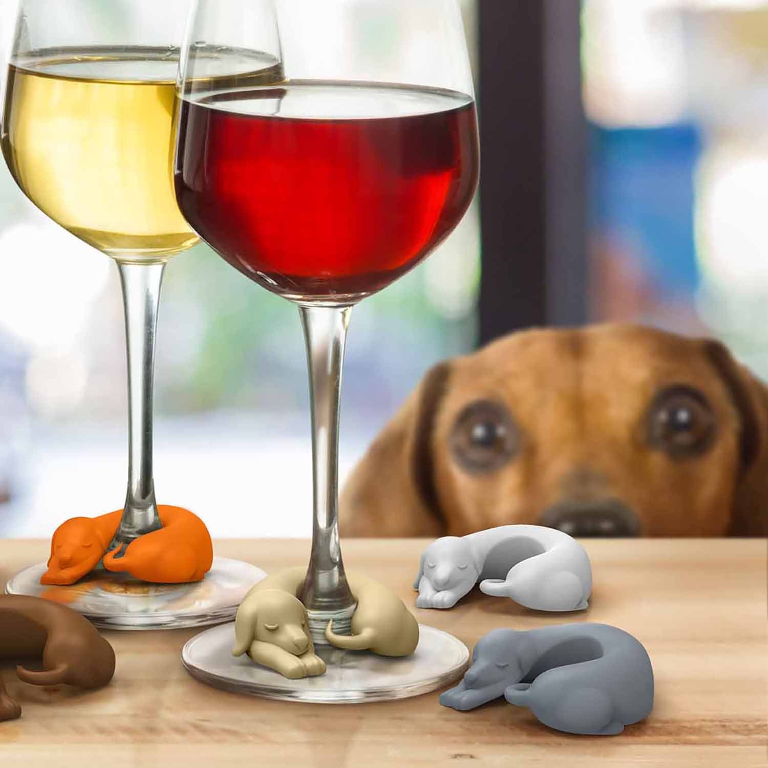 Set de 6 marcadores para copas. Diseño de perritos de distintos colores. Divertida y entretenida para distinguir su vaso de vidrio/botella. Ayuda a identificar claramente las copas de vino de los invitados de un vistazo mientras agrega diversión decorativa y festiva en cualquier reunión. Medidas 4 x 2 x 5 cm c/u