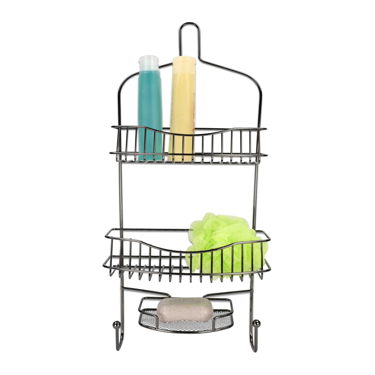 CaracterÃsticas Hecho de peso pesado, ónix negro duradero Diseño de estante profundo con 2 ganchos multiuso y una jabonera Mantenga su champú, acondicionador, jabón y muchos otros artÃculos esenciales para la ducha. Ganchos para maquinillas de afeitar y otras herramientas de ducha. Presupuesto Color: negro Dimensión: 10 x 25 x 5 - Peso de la nave: 10.18 lbs.