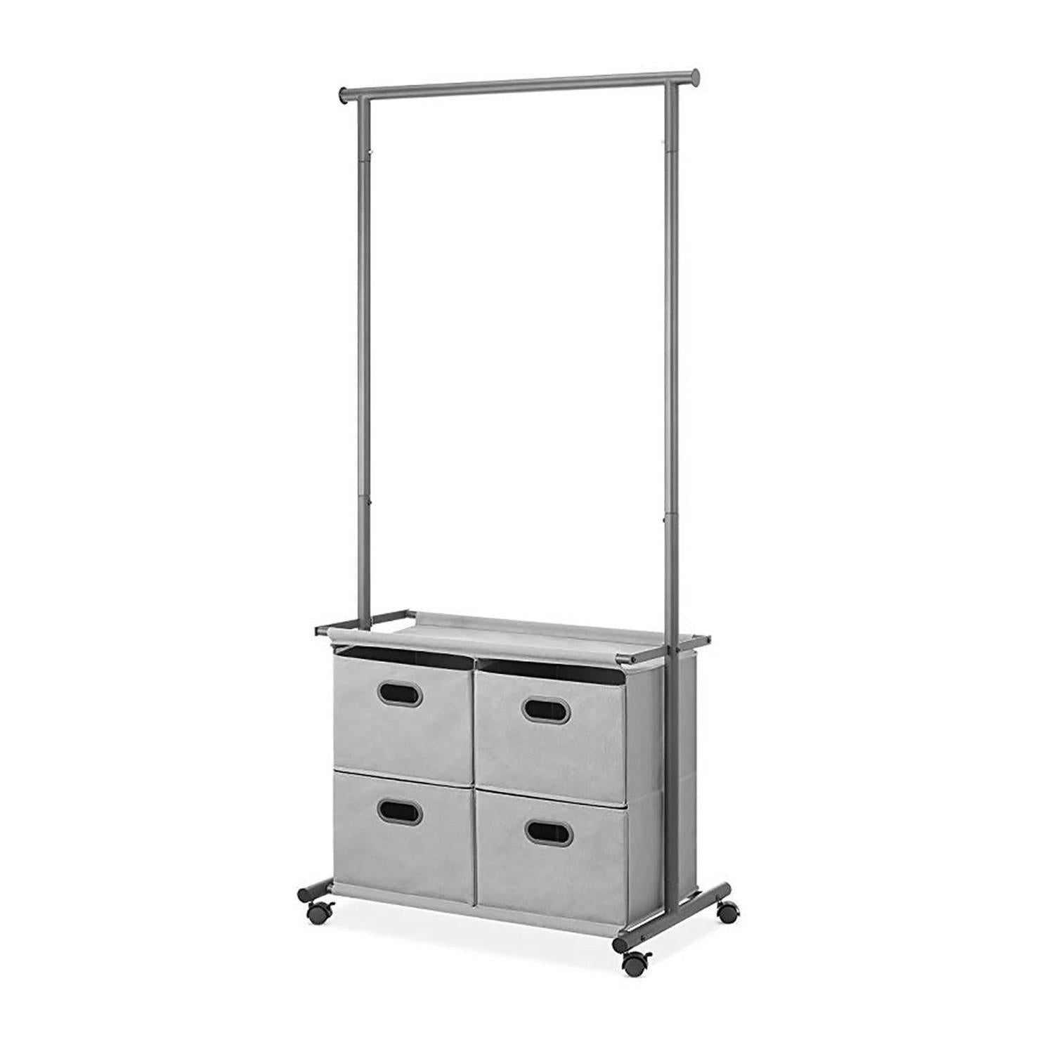 Clóset con 4 ruedas de bloqueo para mover fácilmente, en la parte inferior cuenta con 4 cajones con asa, para guardar ropa, objetos, zapatos o documentos y en la parte de arriba tiene una barra para colgar tus prendas favoritas. Es Ideal para organizar tu habitación. Ahorra espacio.