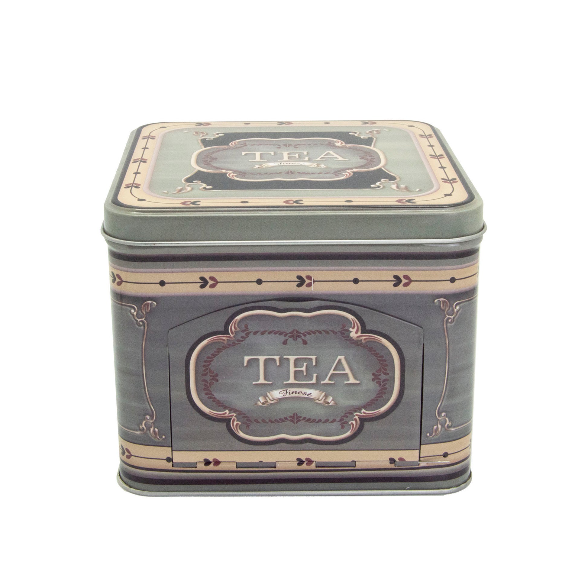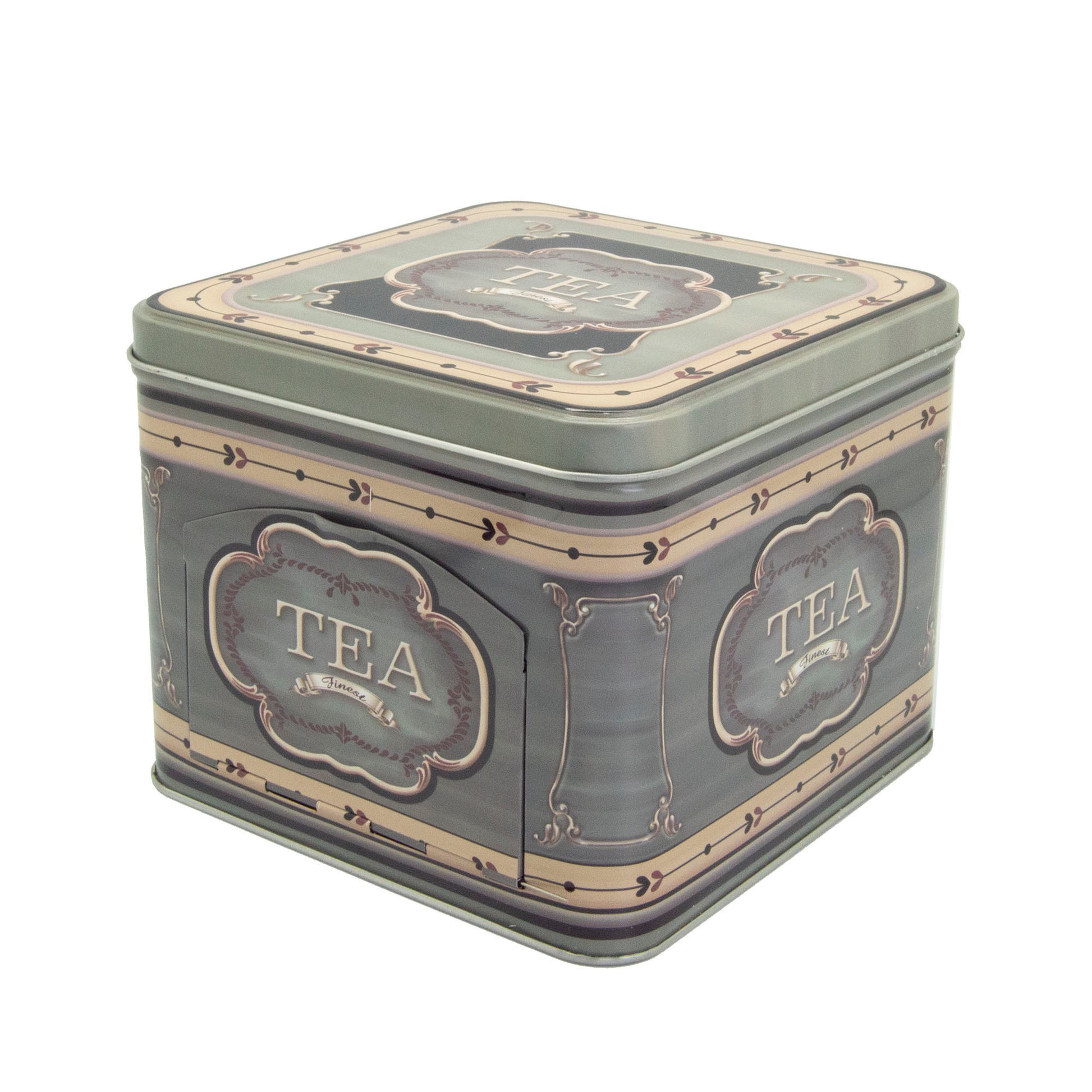 Recipiente cuadrado de lata con tapa y apertura 'TEA'