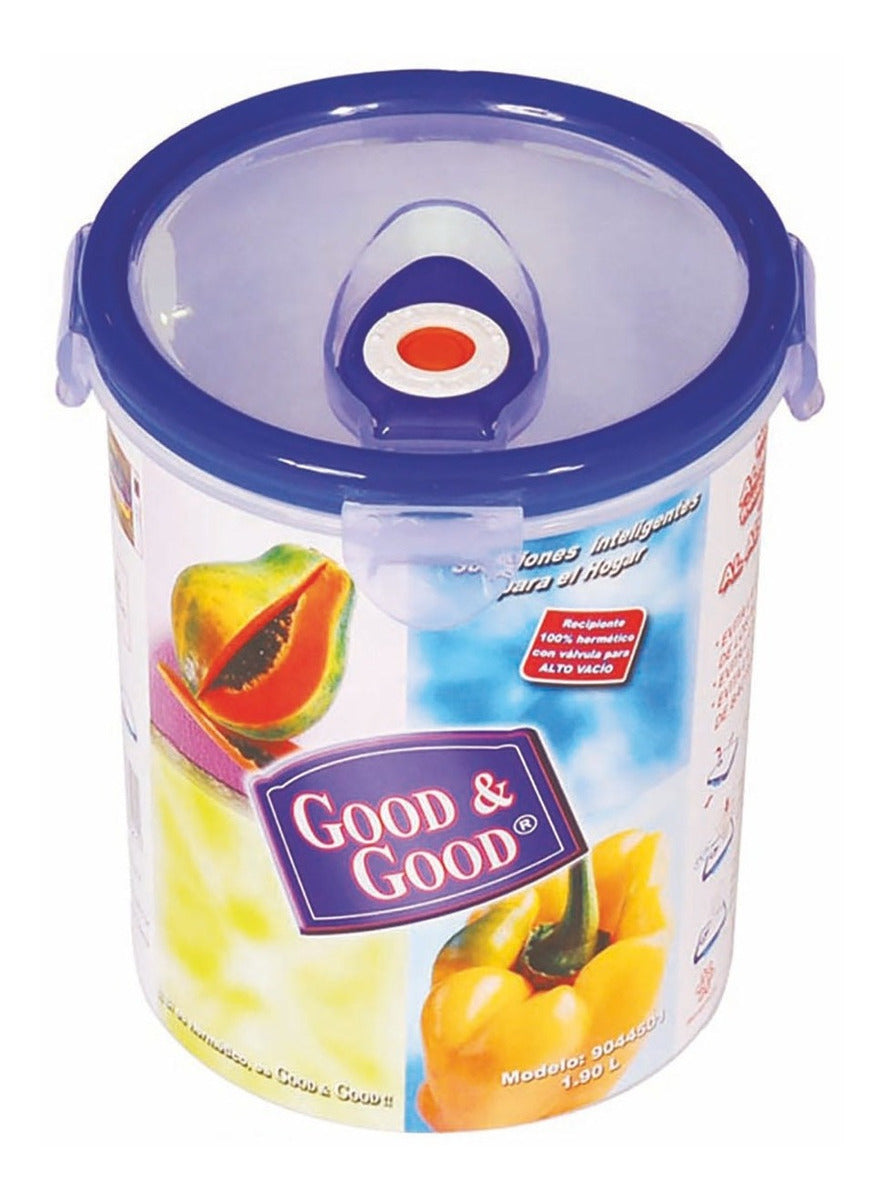 PRODUCTO:Nombre: Recipiente Hermético con Válvula 1LMarca: Good & GoodDESCRIPCIÓN:Contenedor hermético con válvula. Elaborado en plástico grado alimenticio, sin BPA. No guarda olores ni sabores. Tapa con pestañas que cierran herméticamente. Mantiene alimentos secos o húmedos como cereales, frutas, verduras. Puedes tirar de la válvula de ventilación de la tapa y calentar tu almuerzo con microondas. Capacidad 1LCARACTERÍSTICAS PRINCIPALES:-Capacidad: 1 L-Color: Transparente con azul-Material: PlásticoMÁS DETALLES:Tiempo de entrega: 5 díasPeso del paquete: 1 kgMedidas: 14 x 17 x 14 cmMaterial: plasticoModelo: 9044501Meses de garantía: 3Garantía: Sólo por defecto de fábricaCondición: NuevoColor: AzulNombre de color: AzulEAN: 7502239900821GTIN: 7502239900821Género: UnisexPaís de producción: ChinaContenido del paquete: 1 contenedor 1 tapaSKU: 9044501