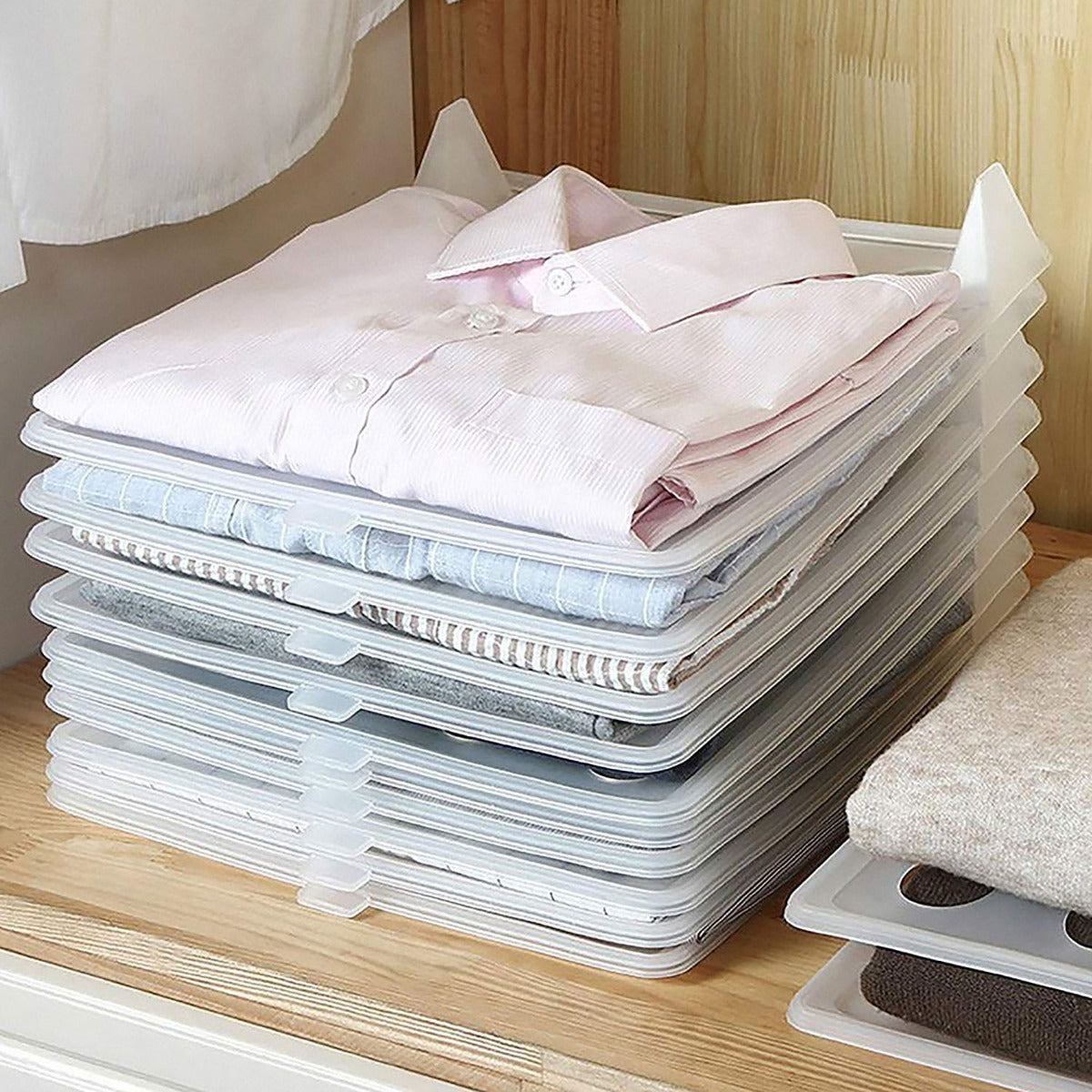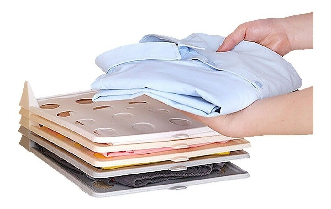 Set de 5 tablas de plástico unidas para que tus playeras queden mejor organizadas y se mantengan sin arrugas, lo puedes colocar en tu clóset y es una gran herramienta para mantener tu ropa organizada. además incluye un juego de 10 ganchos infantiles forrados en terciopelo color rojo.Puedes encontrar más productos como este en nuestra página oficial de : https://tienda.mercadolibre.com.mx/ellegance-houseware