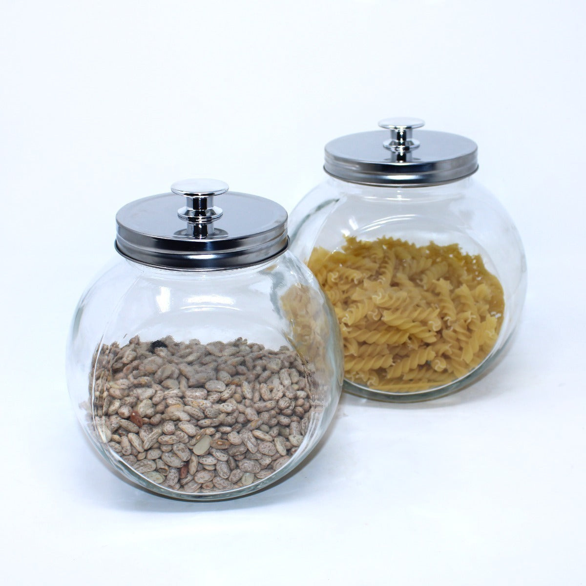 Set de 2 contenedores de vidrio transparentes con tapa enroscable de acero y agarradera en la tapa. Con capacidad de 2.2 L y 1.6 L. No guarda olores ni sabores. Ideal para guardar alimentos en la alacena o refrigerador o bien para almacenar cualquier objeto. Su diseño es único y su color transparente hace que el contenido sea visible rápido.Puedes encontrar más productos como este en nuestra página oficial de : https://tienda.mercadolibre.com.mx/ellegance-houseware