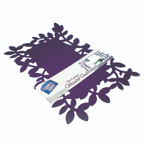 Juego de 4 manteles individuales de plástico flexible color morado con un hermoso diseño de hojas.