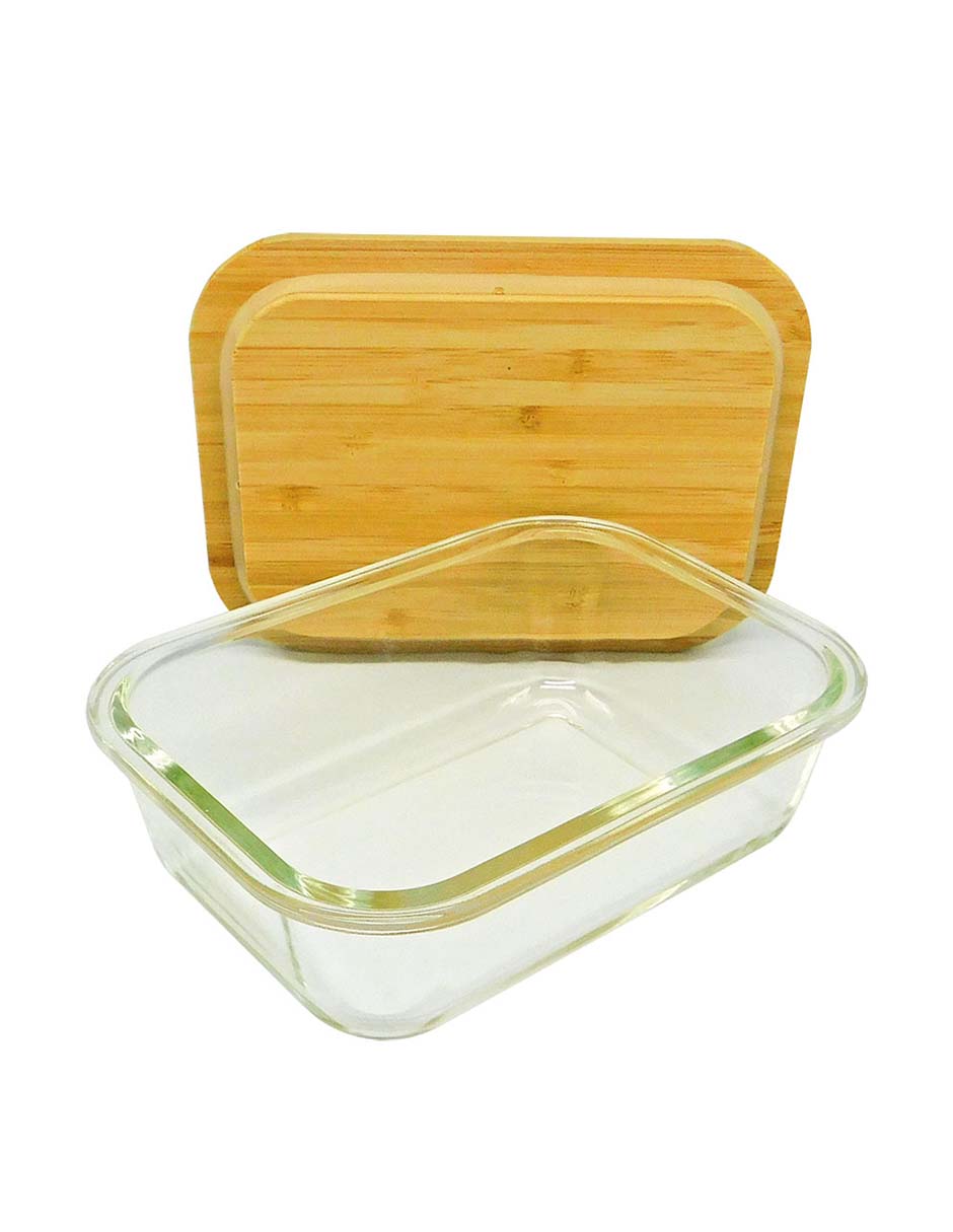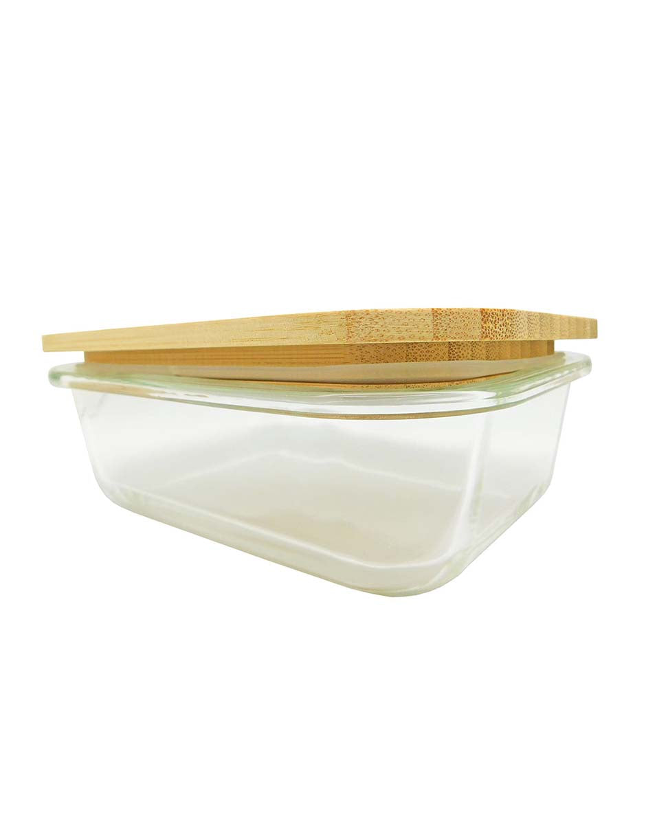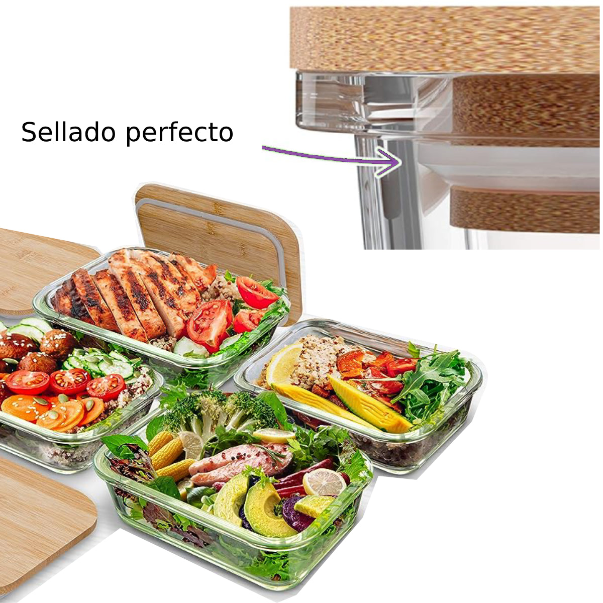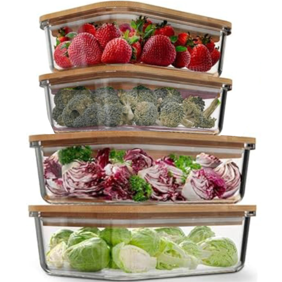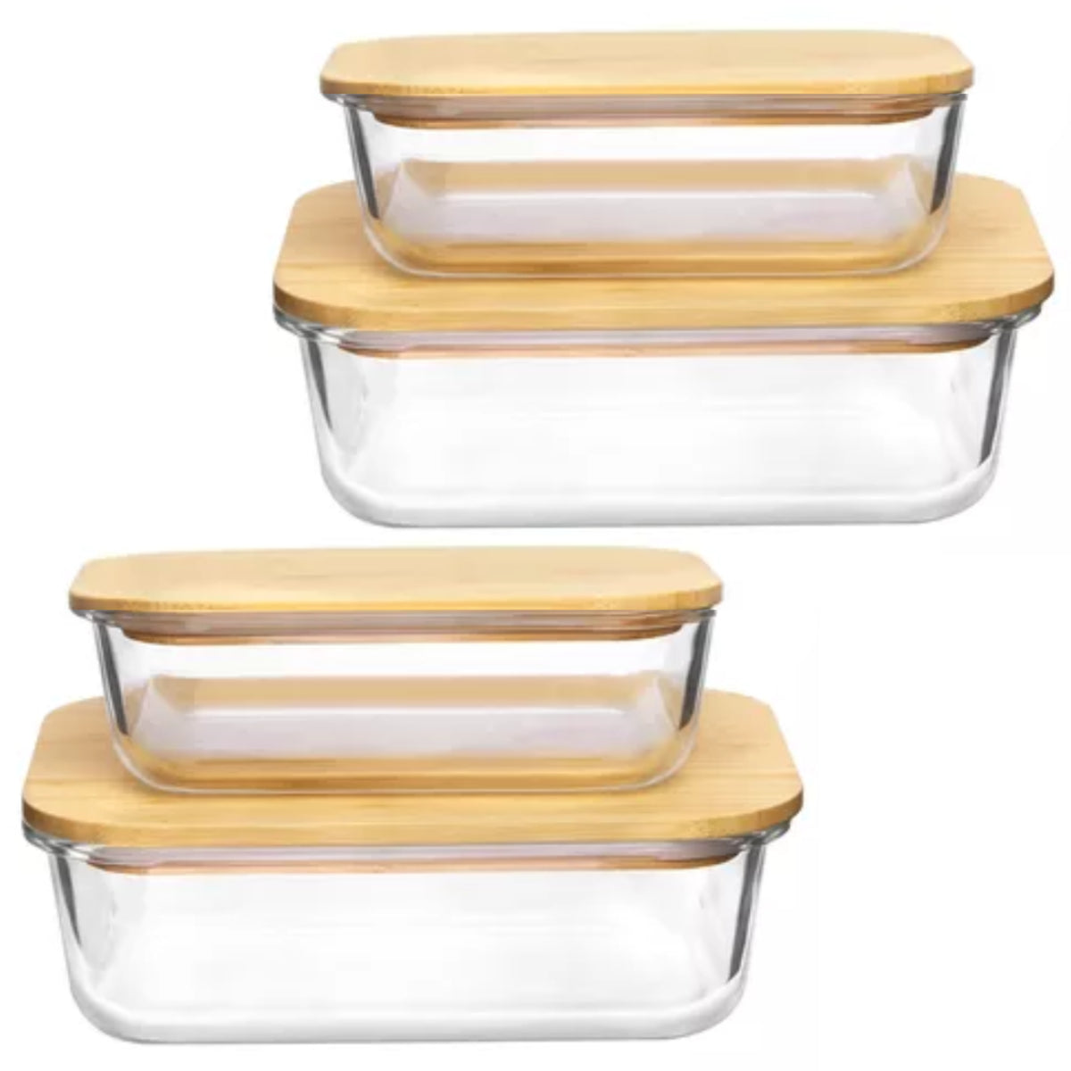 Set de 4 contenedores de vidrio y bambú de 1.5 L y de 640 ml
