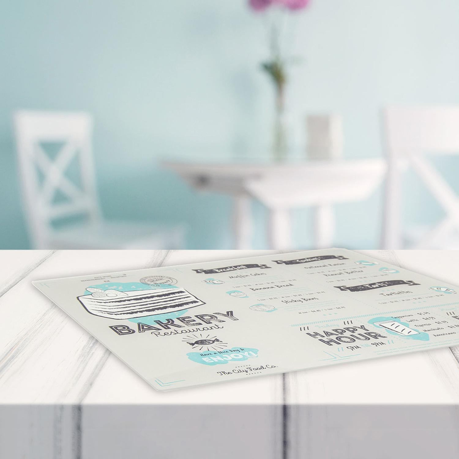 Diseño inspirado en el menú y una superficie antiproyección y antipicrobiana que resiste olores, manchas, arañazos y bateria Adornado con pies de silicona antideslizantes, proporciona una superficie niveladora al cortar y preparar ingredientes.
