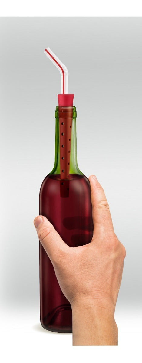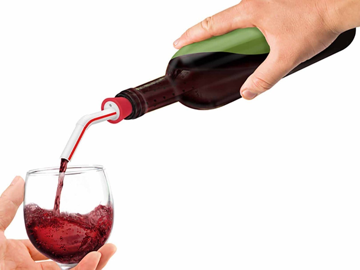 Este novedoso tapón de botella de vino también actúa como un aireador cuando vierte vino a través de él, el diseño de paja flexible introduce la cantidad correcta de aire en su vino mientras sirve y, con suerte, también trae una sonrisa a los rostros de sus invitados.