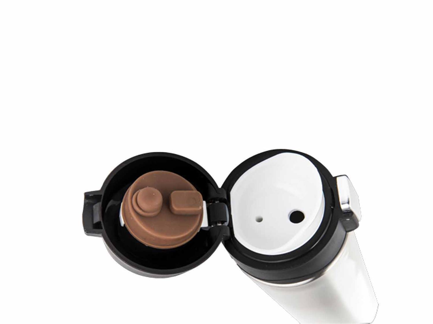 Termo de acero inoxidable de doble pared, tapa que evita derrames, cuenta con candado de seguridad en la boca de la botella.