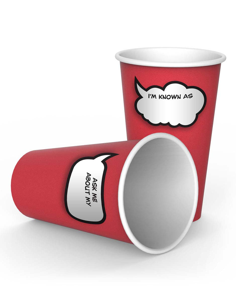 Vasos de papel escribibles color rojo. Elaborados en cartón sobre el cual puedes escribir indicaciones. Divertidos e ideales para tus fiestas. Combina con otros suministros de fiesta de arcoÃris y decoraciones de fiesta para crear un colorido ambiente de fiesta. Perfecto para la oficina, vacaciones, fiestas, bodas o eventos especiales, fácil limpieza. Medidas: 9 x 9 x 13.5 cmc/uÂ